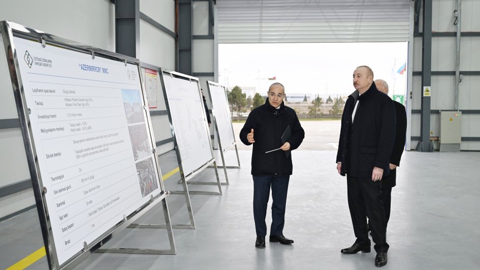Azərbaycan Respublikasının Prezidenti İlham Əliyev yanvarın 27-də Sumqayıt Sənaye Parkında “Azermirror” MMC-nin güzgü vərəqələrin istehsalı zavodunun açılışında iştirak edib.