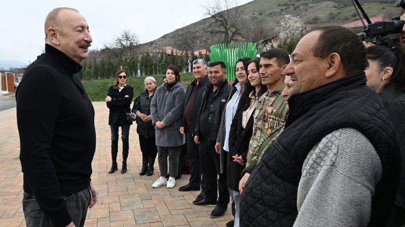 Daha sonra Prezident İlham Əliyev və birinci xanım Mehriban Əliyeva Xanobaya qayıdan kənd sakinləri ilə görüşüblər.